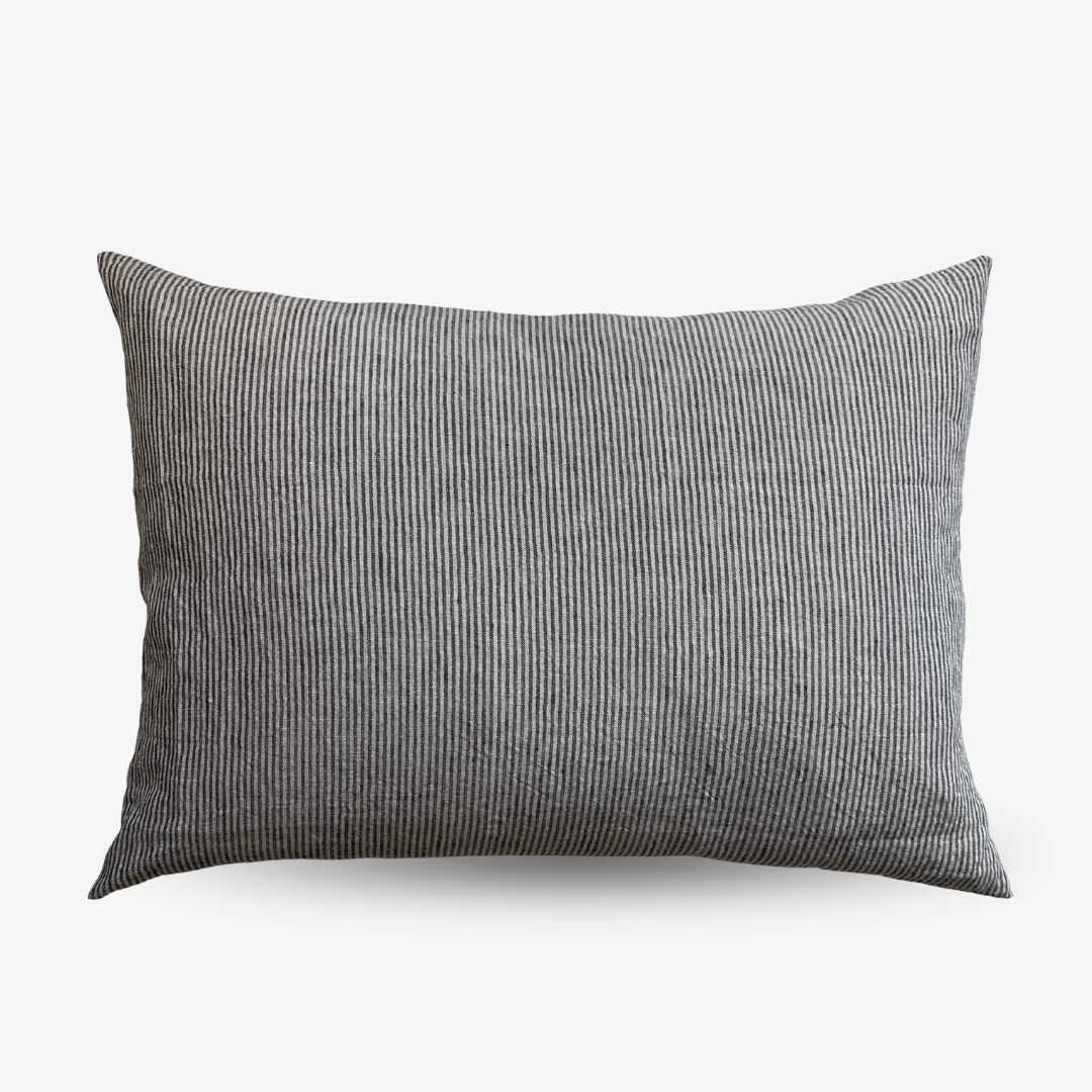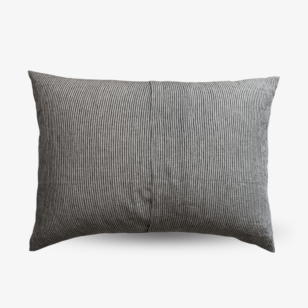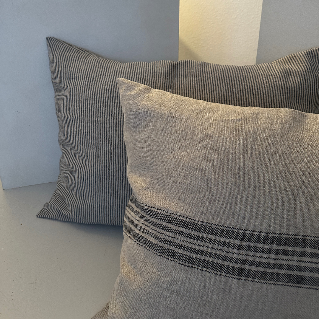 Coussin en lin - Rayures naturelles/noires (70x50cm)